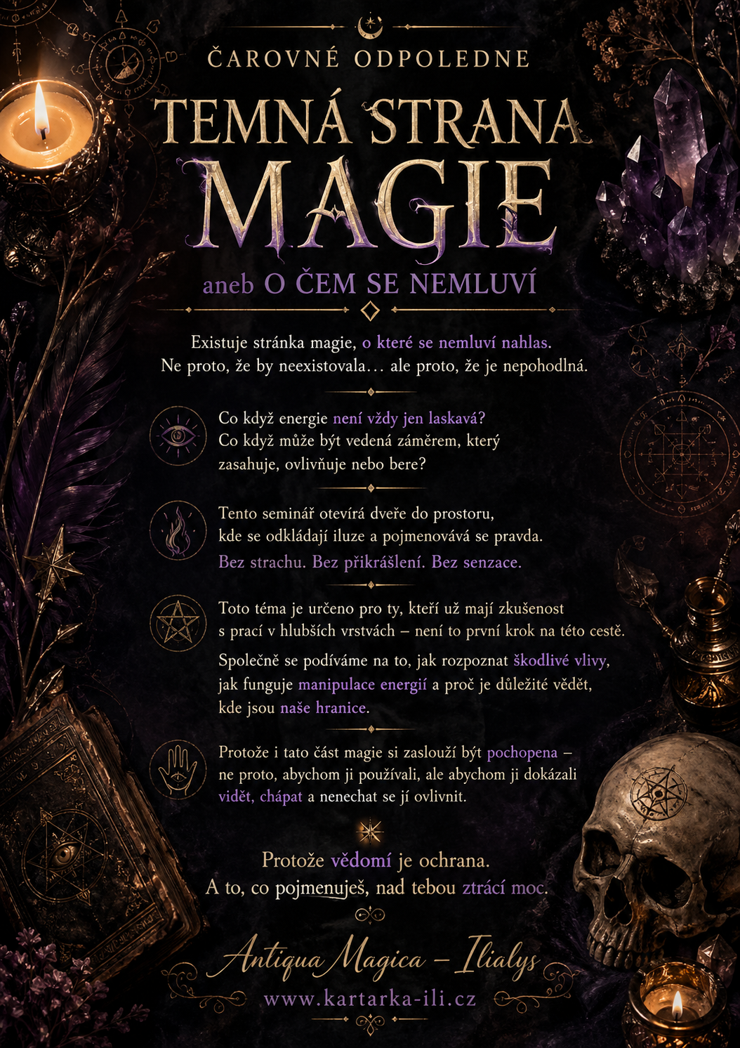 Okamžikem přihlášení na čarovné odpoledne – seminář- vstupujete do mystického pole tématu, které s Vámi začíná pracovat již před samotným setkáním, a zároveň do mého aktivačního a podpůrného prostoru.